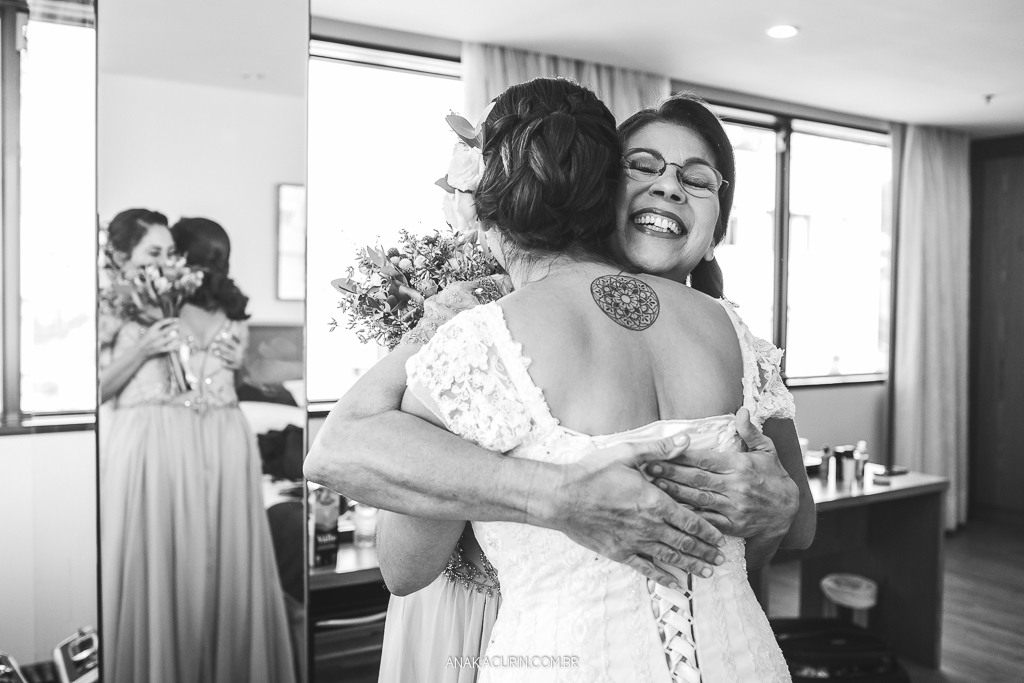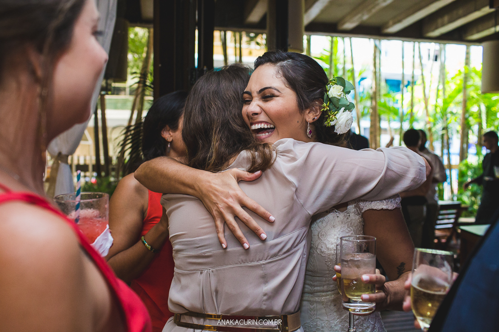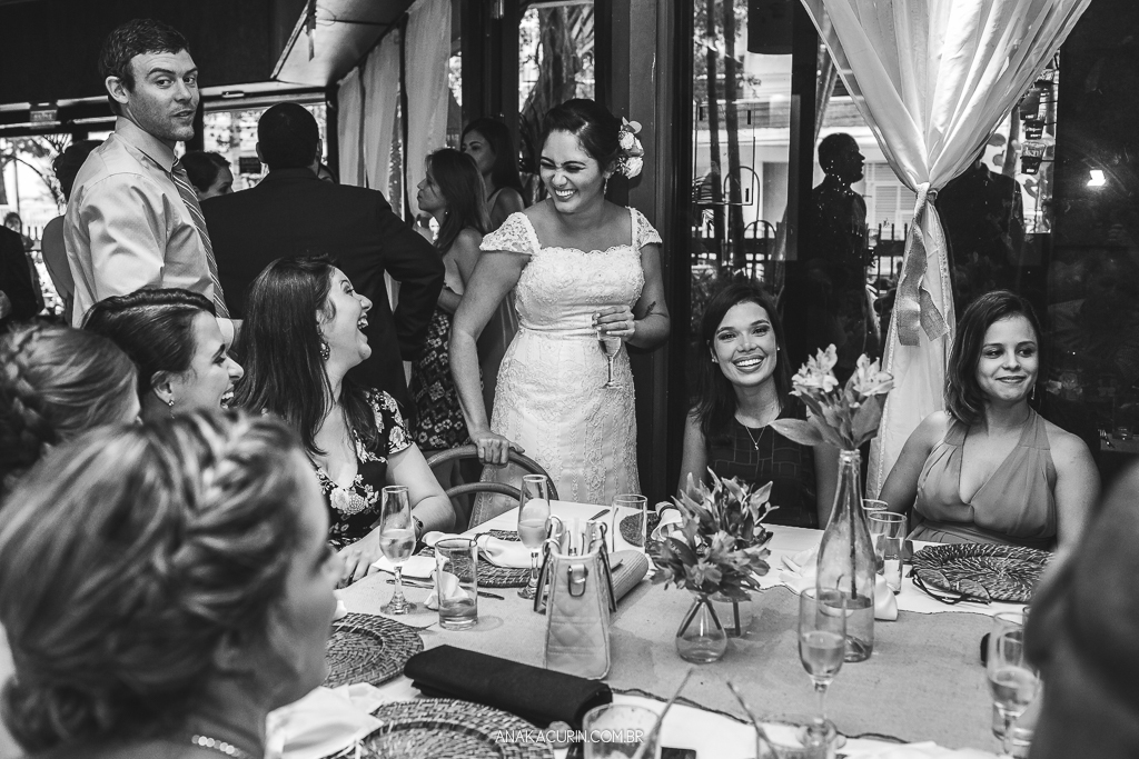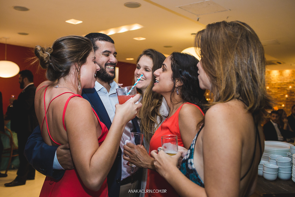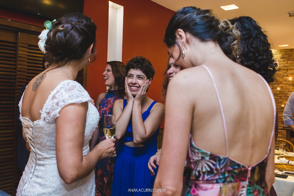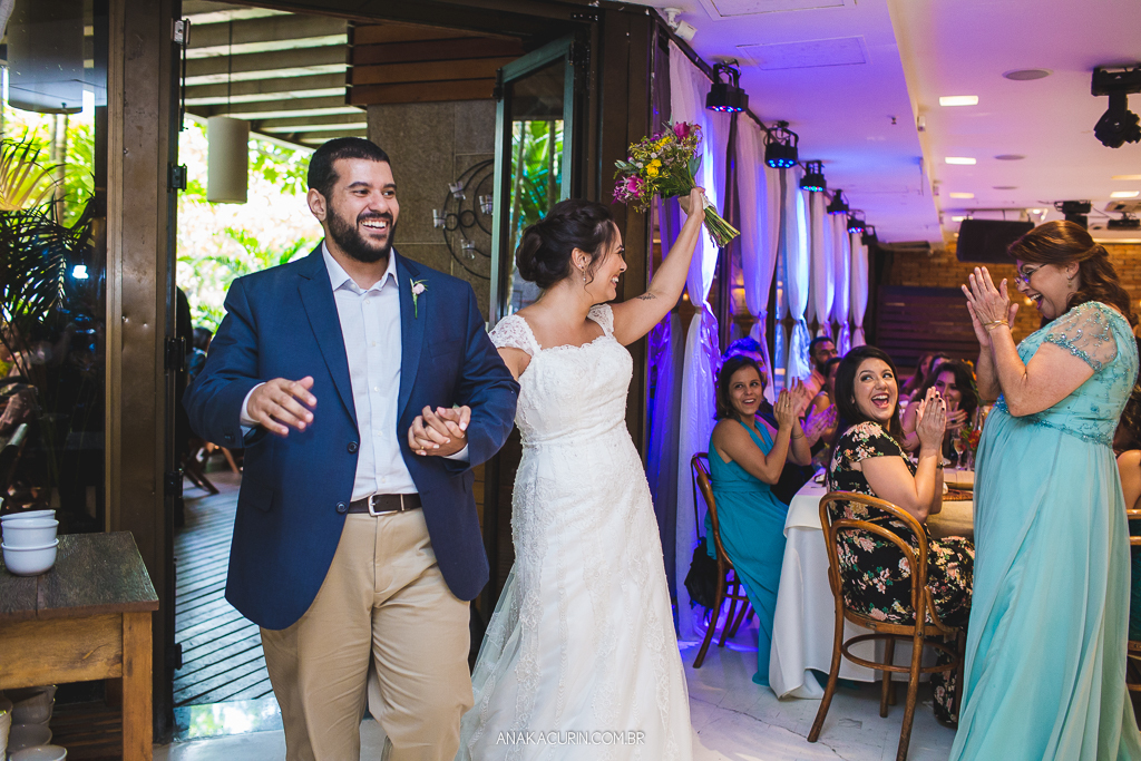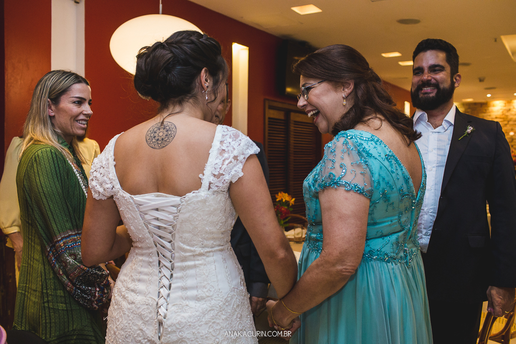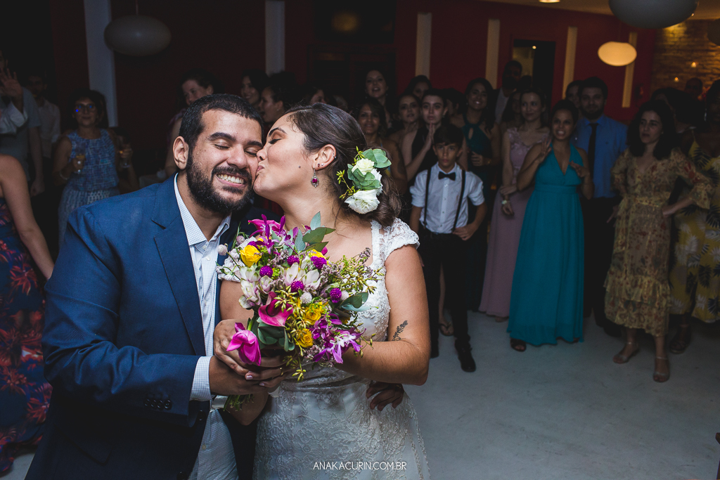 O casamento é uma experiência para se viver de forma integral. Uma celebração de amor que nos convida a estarmos de corpo, alma, mente e espírito presentes. Mas nunca me emocionei com tamanha entrega quanto a da Lu. O tipo de noiva que troca o perfume de grife por uma sinergia de óleos essenciais feito exclusivamente pra ela, que leva oráculo e incenso pro making of e faz cada um dos fornecedores que lá passavam tirar uma carta, ela conseguiu misturar leveza e tranquilidade com paixão e intensidade na medida certa. E ela viveu cada segundo do seu grande dia. Com sua mãe, consigo mesma, com cada fornecedor (eu inclusa) e, claro, com seu amor, Rodrigo. Era tanta felicidade que não tinha como nada dar errado. O sol pintou o dia de um colorido maravilhoso, o clima tava delicioso, todos os convidados emocionados e cheios de amor, o restaurante estava lindo e eu, que fotografei sozinha, ao abrir as fotos para editar tive que me esforçar pra entender como pude estar em tantos lugares e conseguir tantas cenas tipo fotografar o beijo do casal de 3 ângulos diferentes. TUDO confluiu.