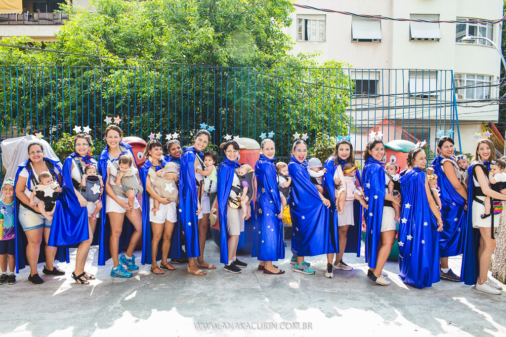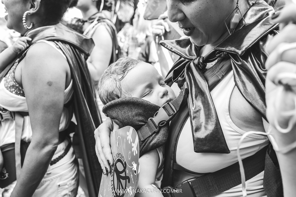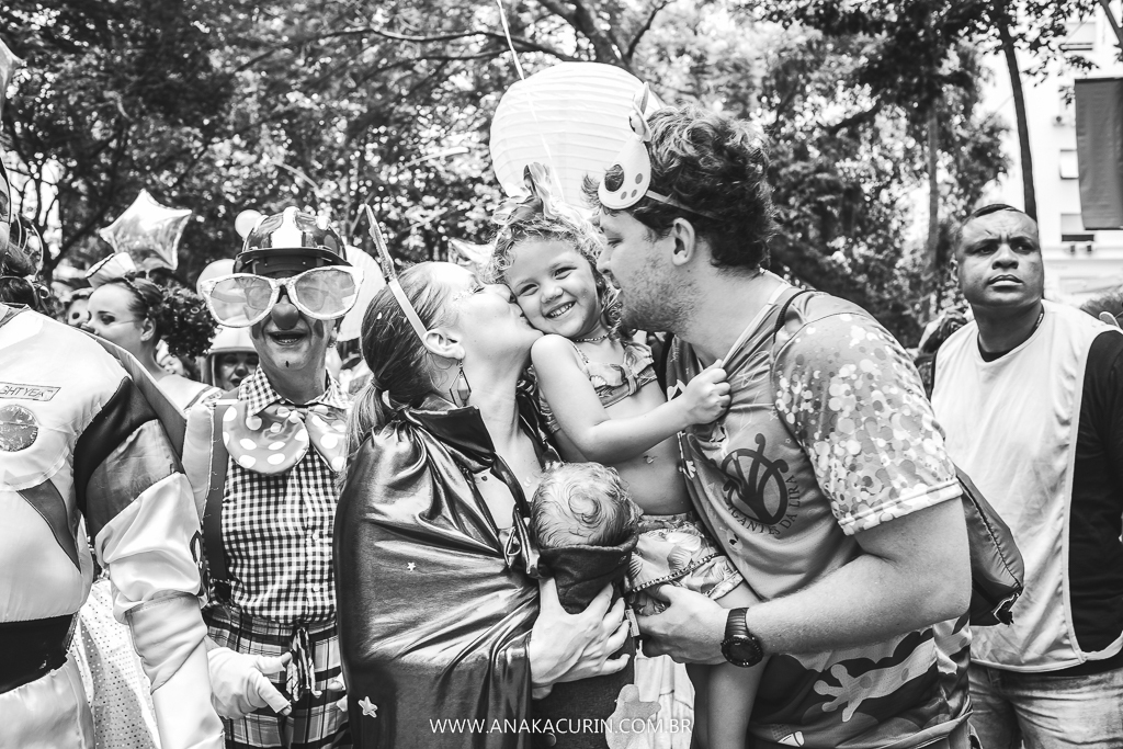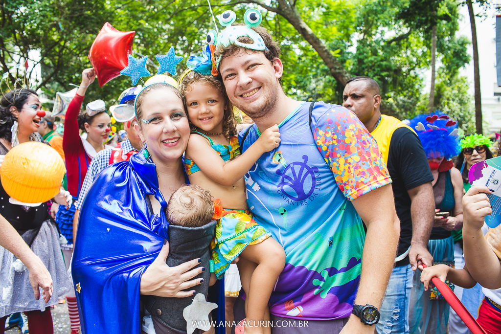 Mariana escolheu o bloco Gigantes da Lira para fazermos suas fotos, numa ala todinha de mães e bebês abrindo esse que sempre acho o bloco mais lindo e colorido do RJ. Um dia quente de carnaval, muita expectativa já na concentração. E quando a abertura do bloco desceu as escadas em direção à rua, os primeiros toques dos tambores arrepiou todo mundo doa pés à cabeça. Senti nos beijinhos demorados que a Mariana deu na cabecinha do Henrique, que ela era toda emoção naquele momento. Acho até que cheguei a ver olhinhos marejados. Fiquei imaginando que devia ser algo muito forte pra ela poder compartilhar aquele momento com seu pequeno. E pra mim, foi como ver o bloco pela primeira vez novamente, tamanha foi a emoção de estar ali tão perto, dentro, perte daquilo tudo. Papai Renato e a irmã Isabel seguiram de pertinho, se divertindo junto e seguindo a gente do lado de fora do cordão. Que dia!