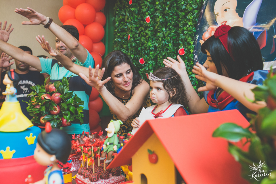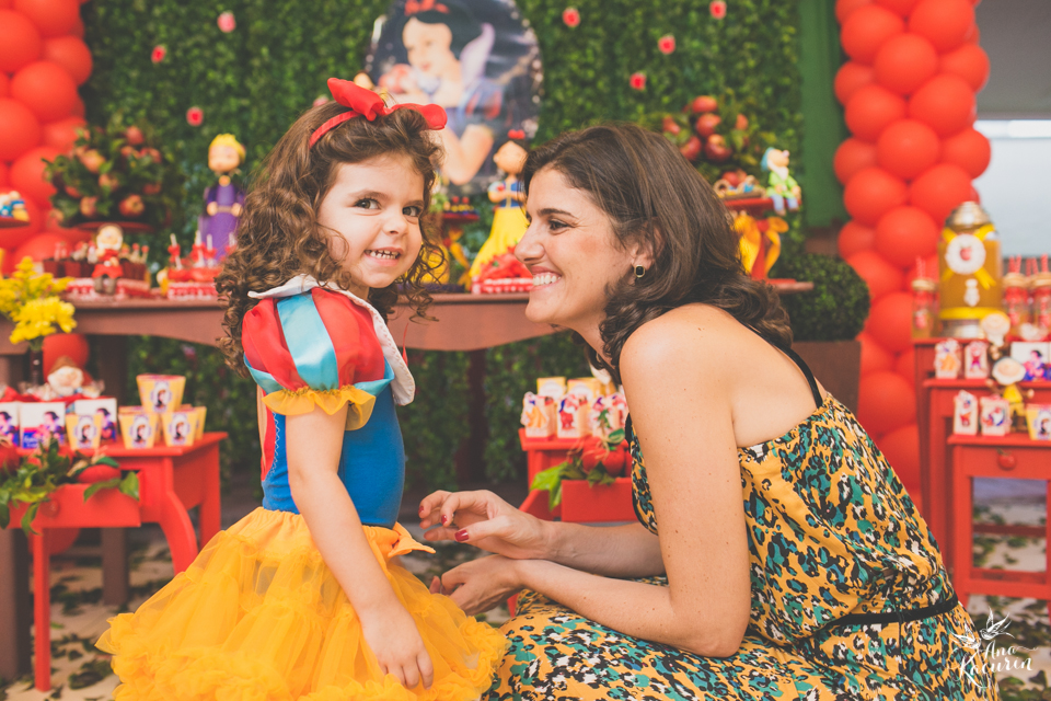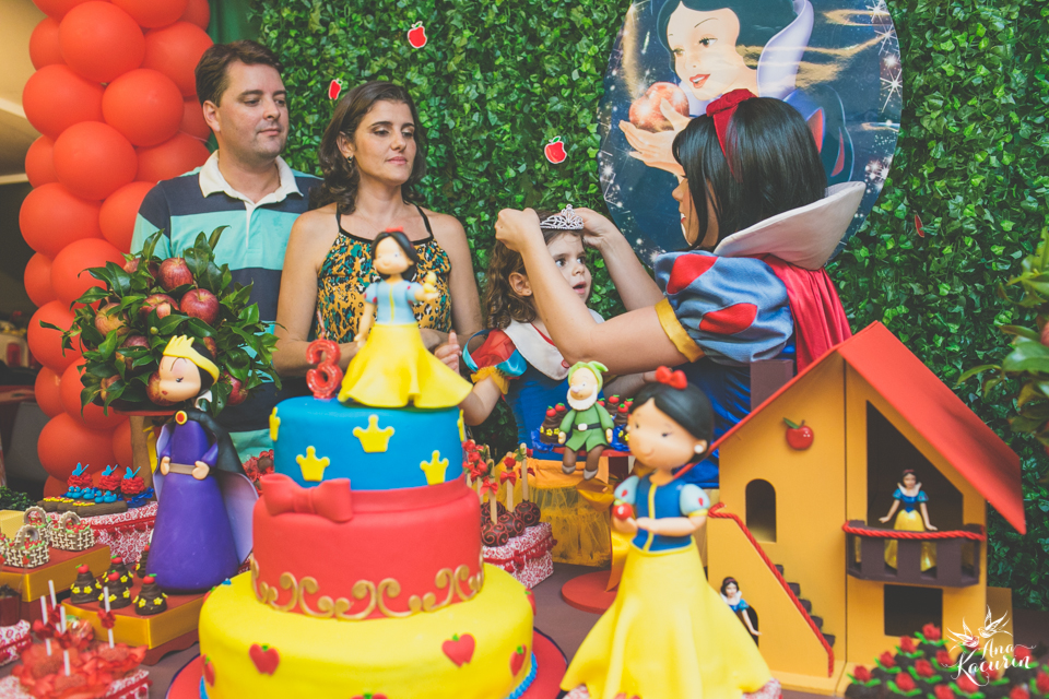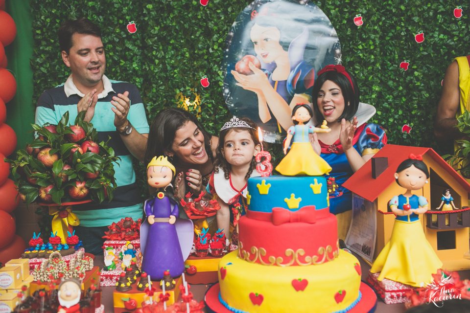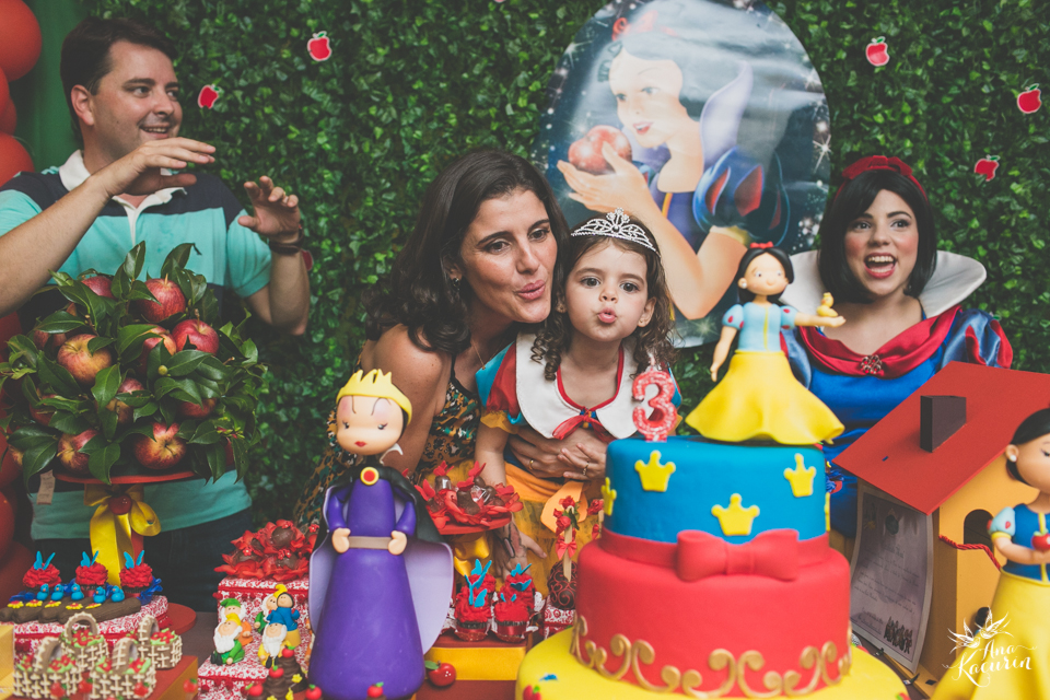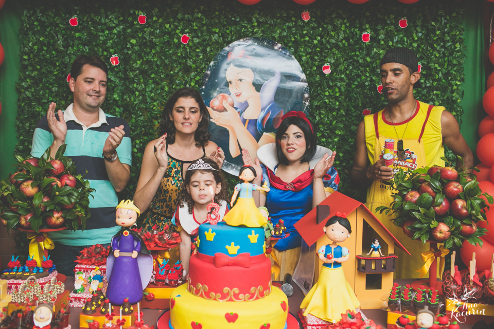 Luisa fez 3 anos em uma festinha de aniversário bem intimista, mas caprichada com o tema da Branca de Neve.