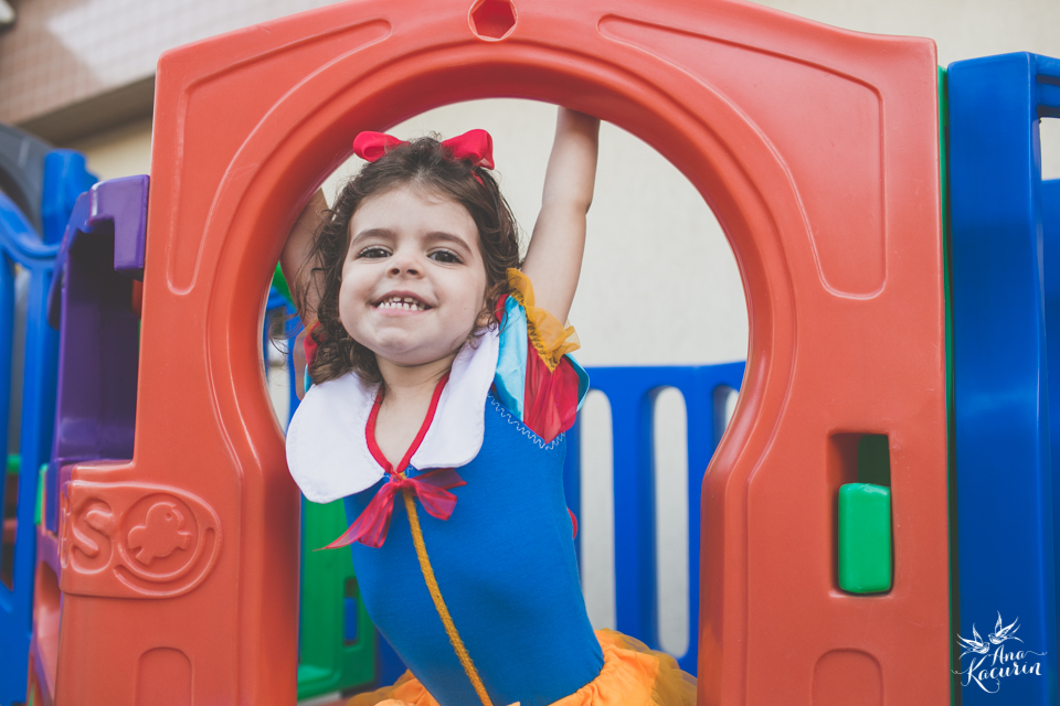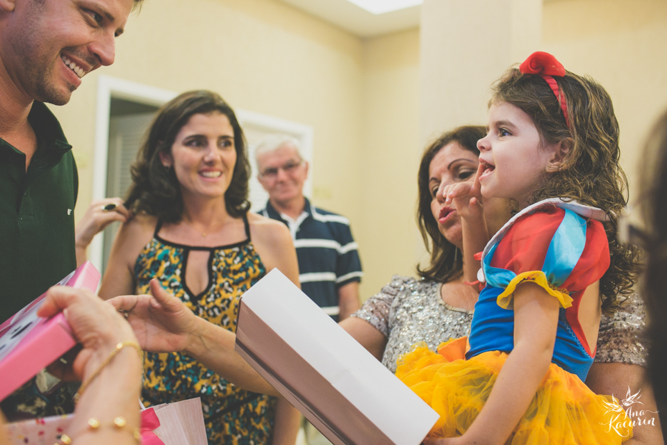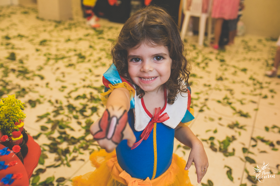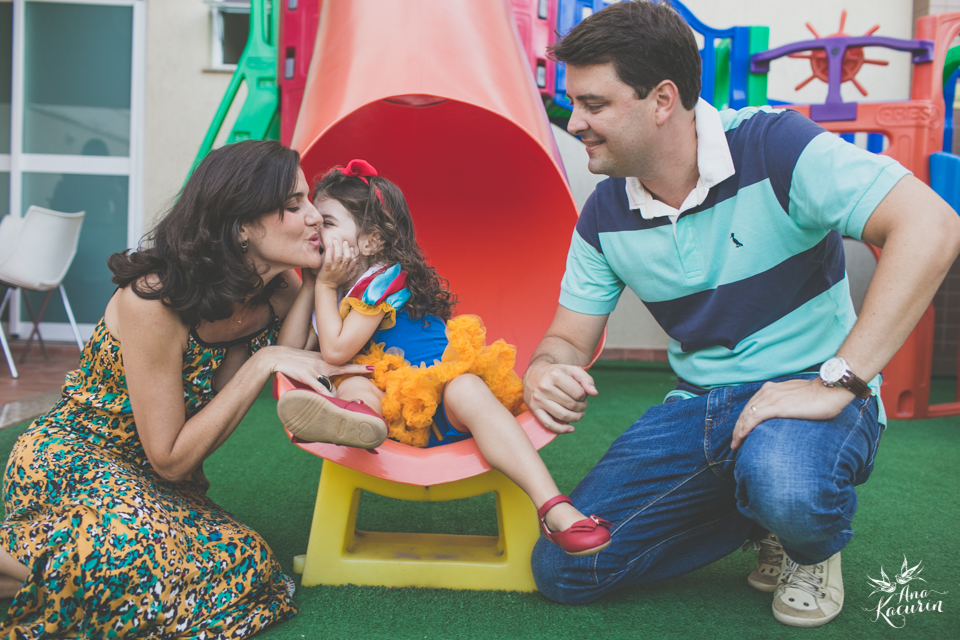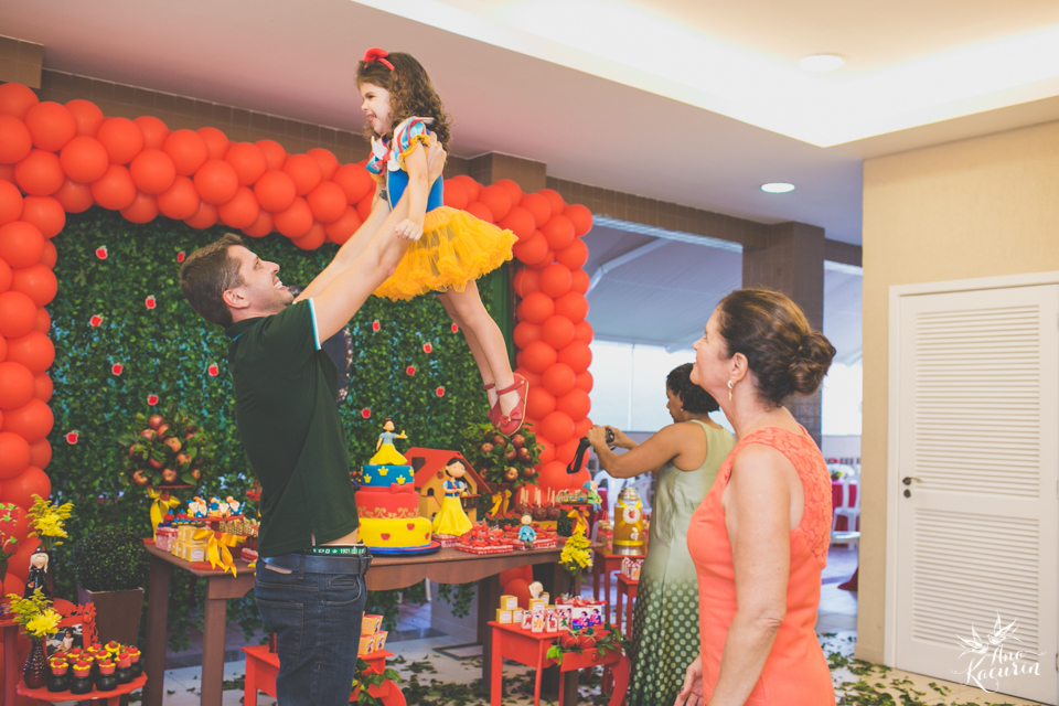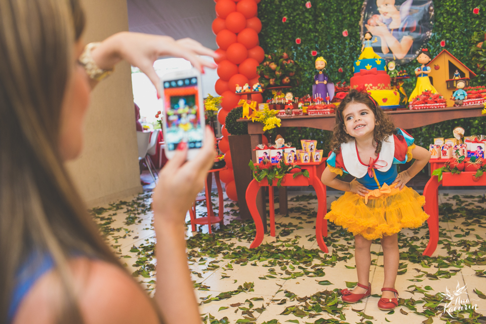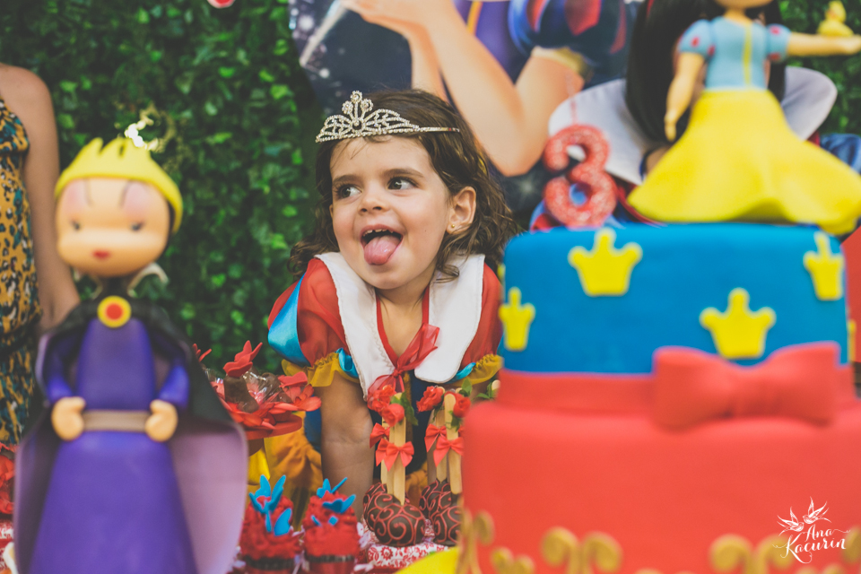 Luisa fez 3 anos em uma festinha de aniversário bem intimista, mas caprichada com o tema da Branca de Neve.