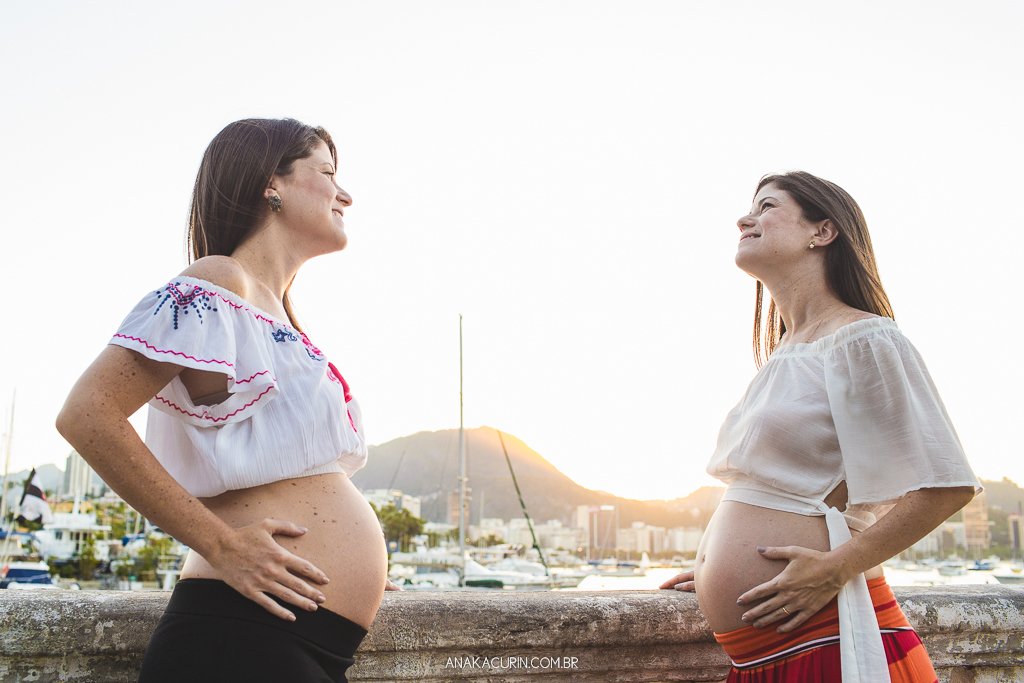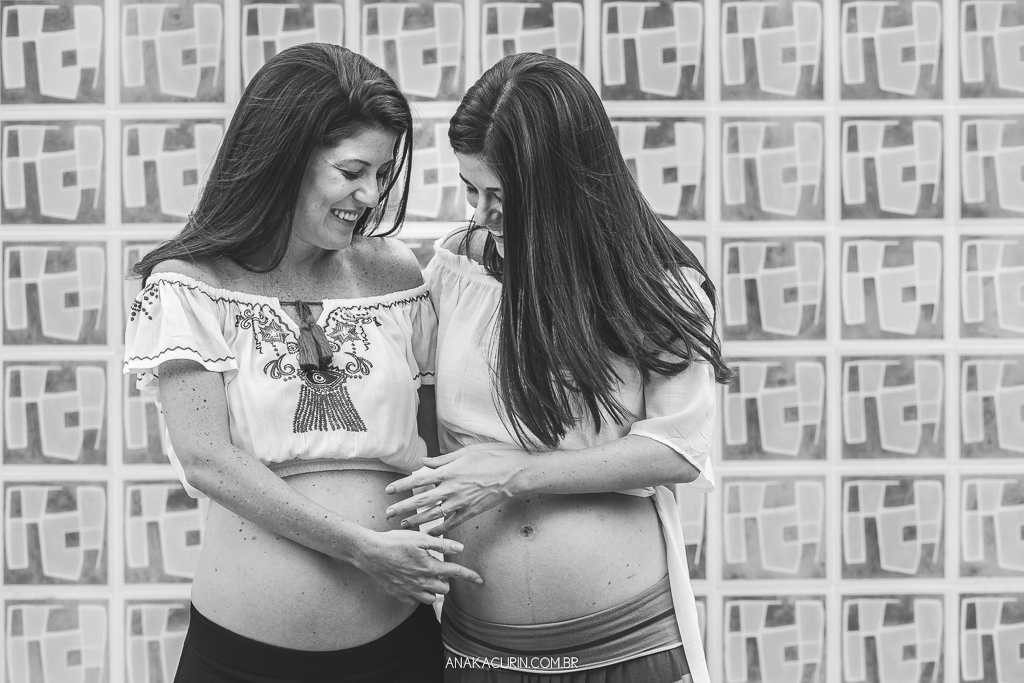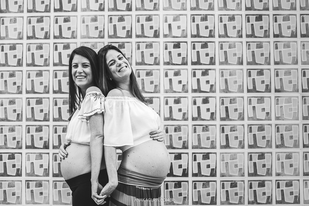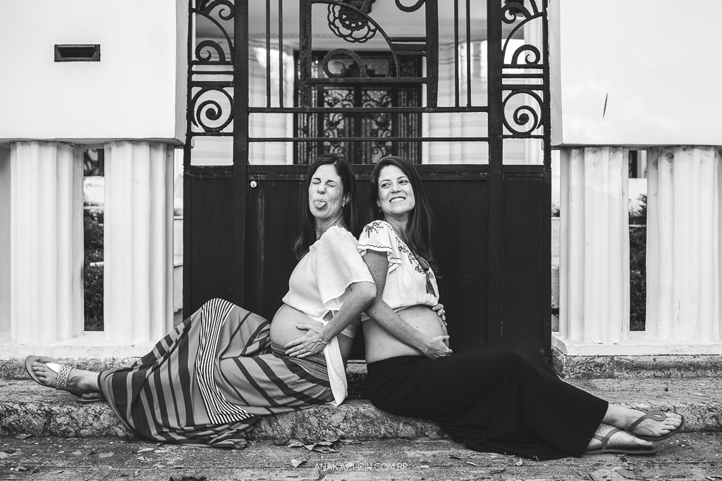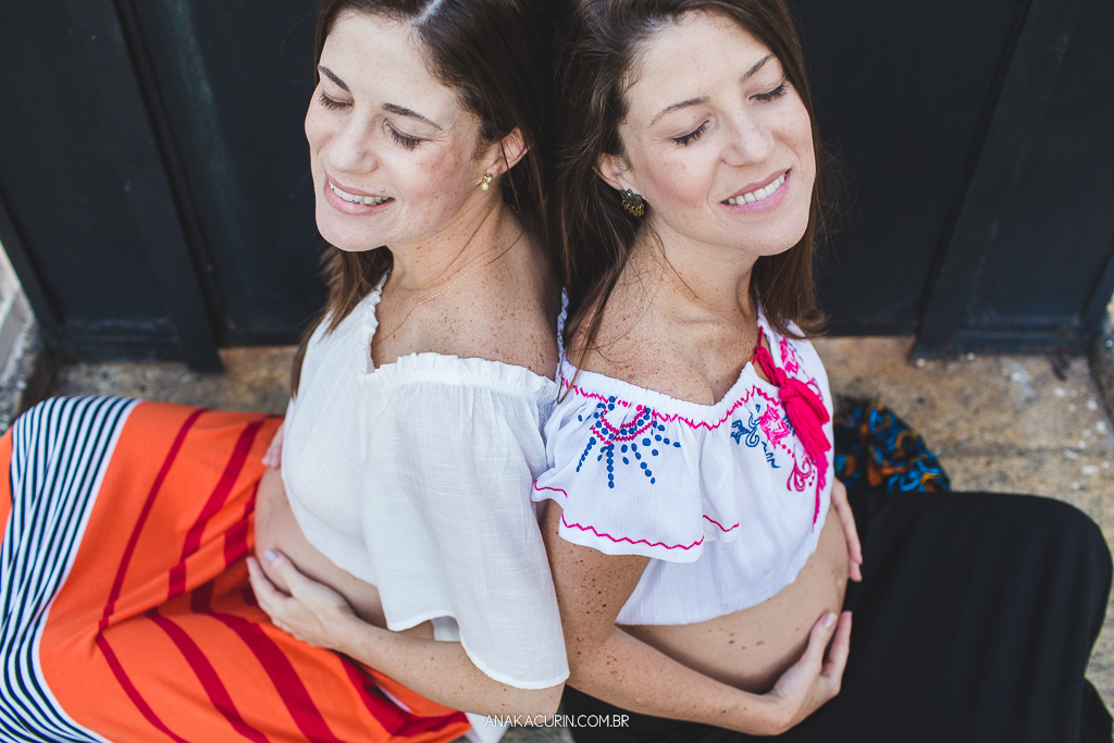 Usar o mesmo portal pra chegar ao mundo, em outras palavras, dividir a barriga da mãe, deve ser um elo muito poderoso. E nos primeiros minutos que passamos juntas, a Alessandra e a Aline já me mostraram a força desse vínculo. Passamos uma tarde juntas criando uma memória muito especial dessa fase que ambas compartilham agora ao mesmo tempo: a gestação. Quão especial deve ser gerar um ser ao mesmo tempo que sua maior companheira de jornada nesse nosso Planeta Terra?