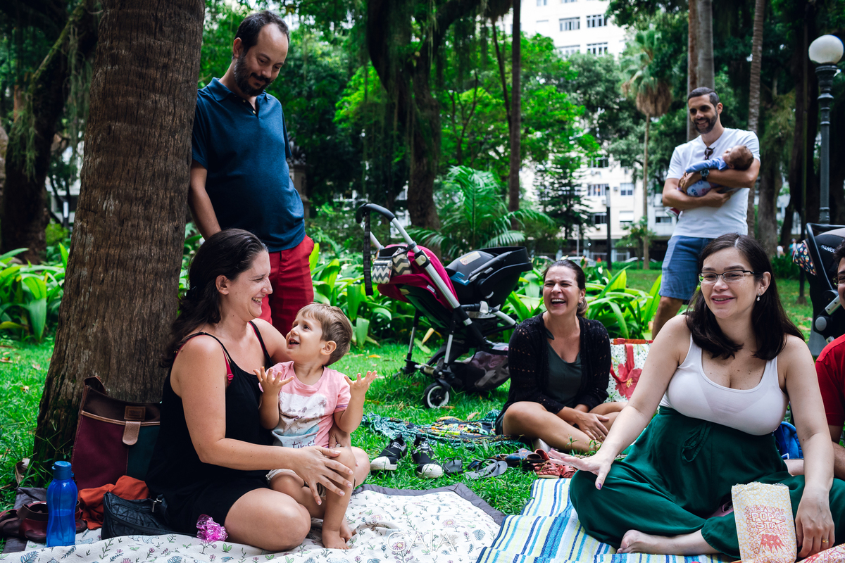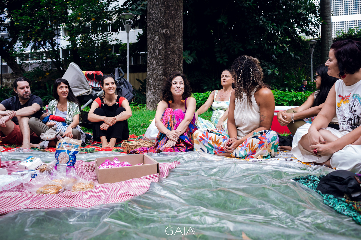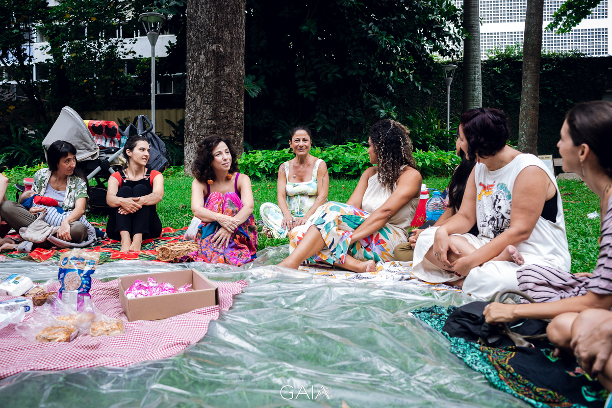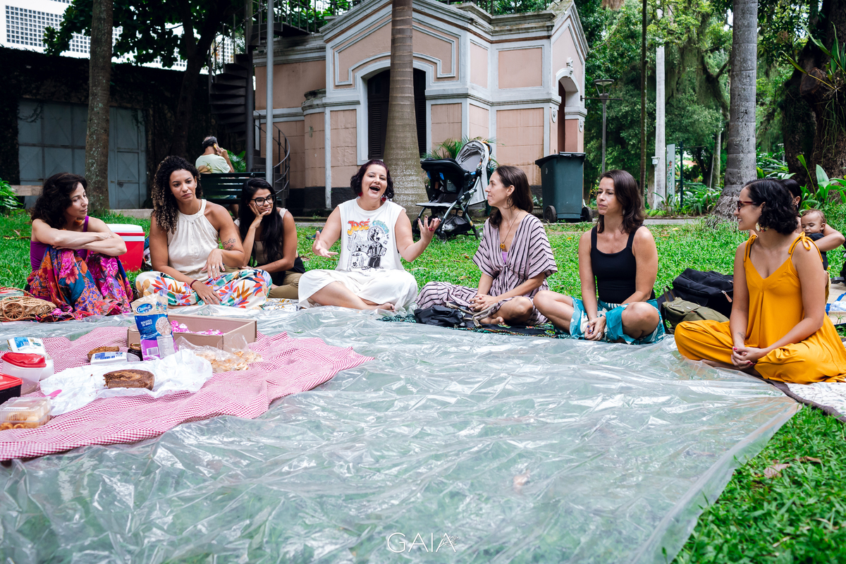 Roda de Gestantes sobre Relatos de Parto de fim de ano, organizada pelas enfermeiras obstetras Priscila Bastos e Lorrana Ferrari e pelas doulas Julieta Roitman, Flavia Penedo e Marina Morena nos jardins do Museu da República no Rio de Janeiro.