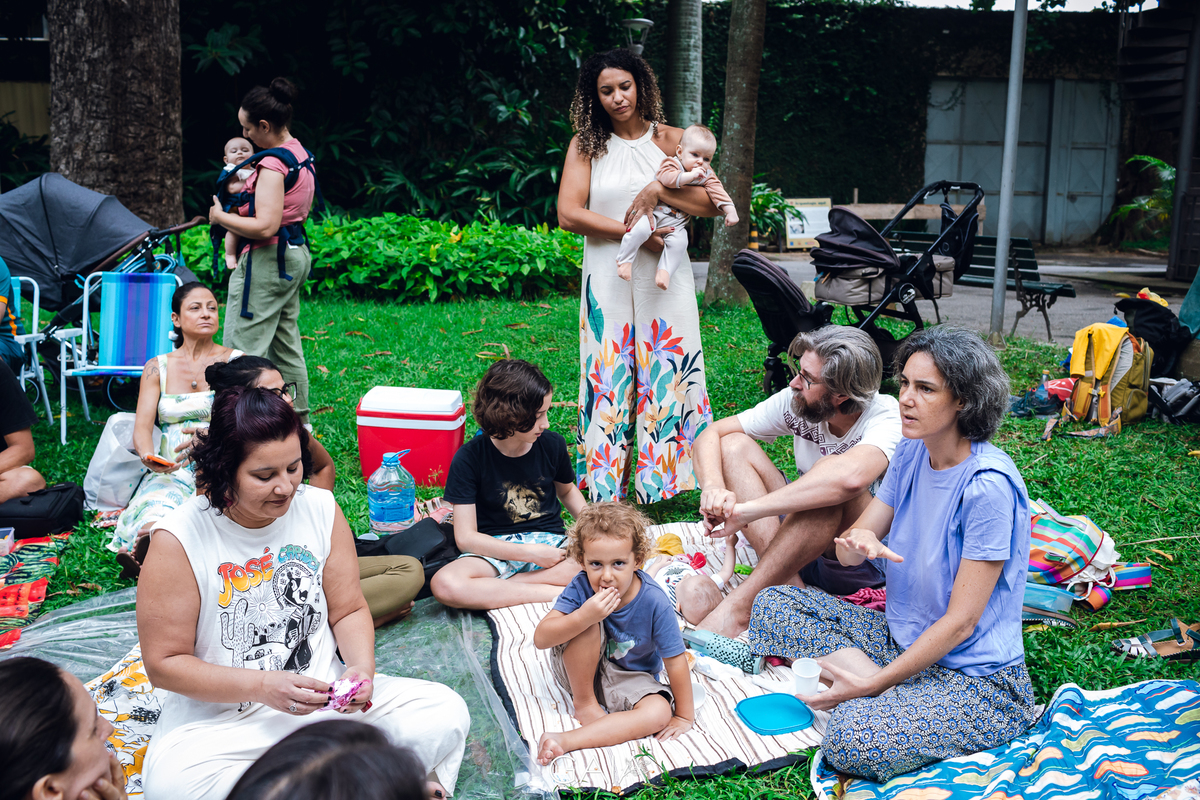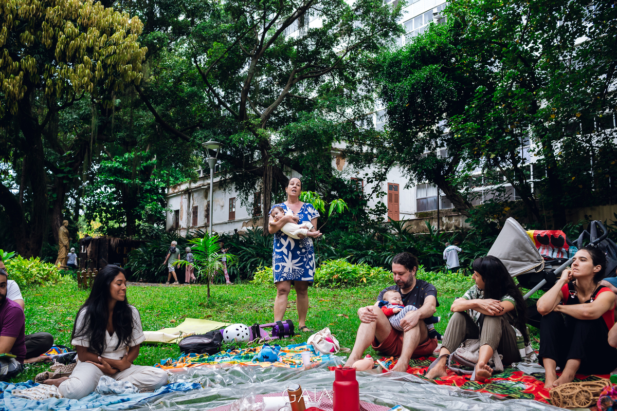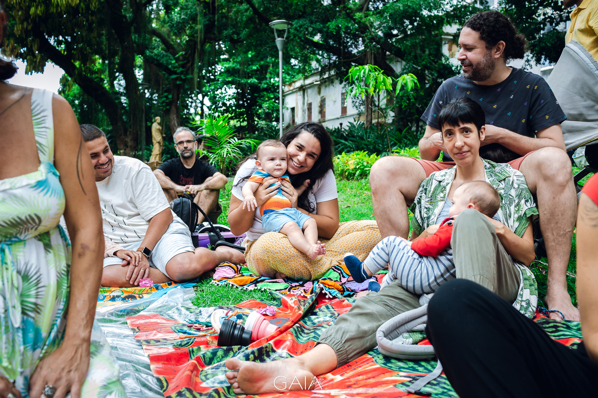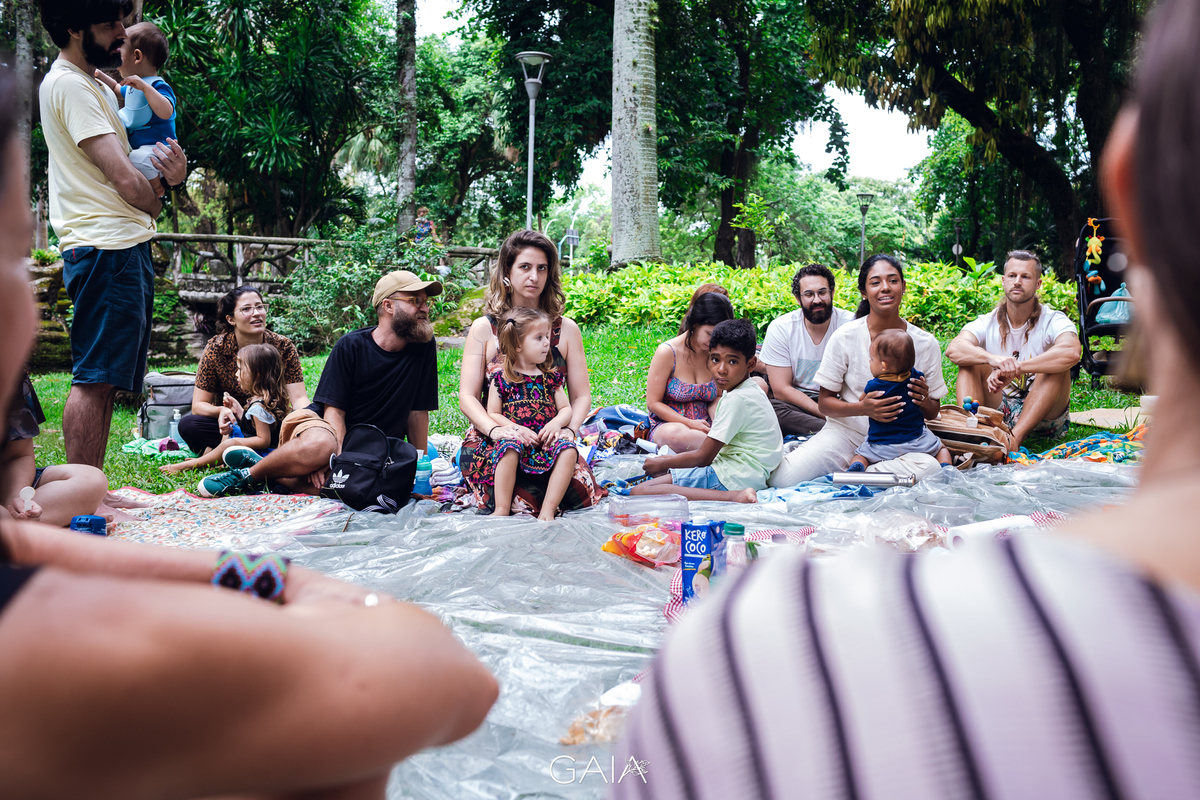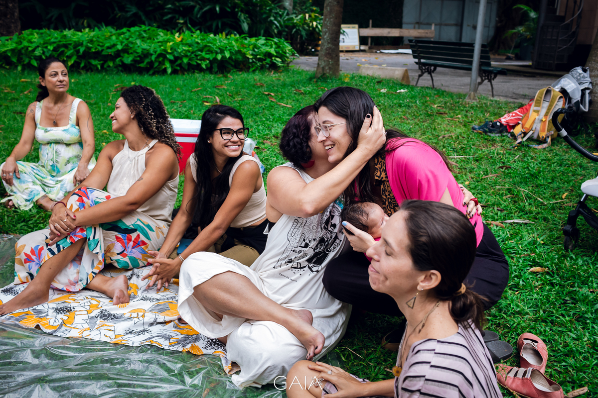 Roda de Gestantes sobre Relatos de Parto de fim de ano, organizada pelas enfermeiras obstetras Priscila Bastos e Lorrana Ferrari e pelas doulas Julieta Roitman, Flavia Penedo e Marina Morena nos jardins do Museu da República no Rio de Janeiro.