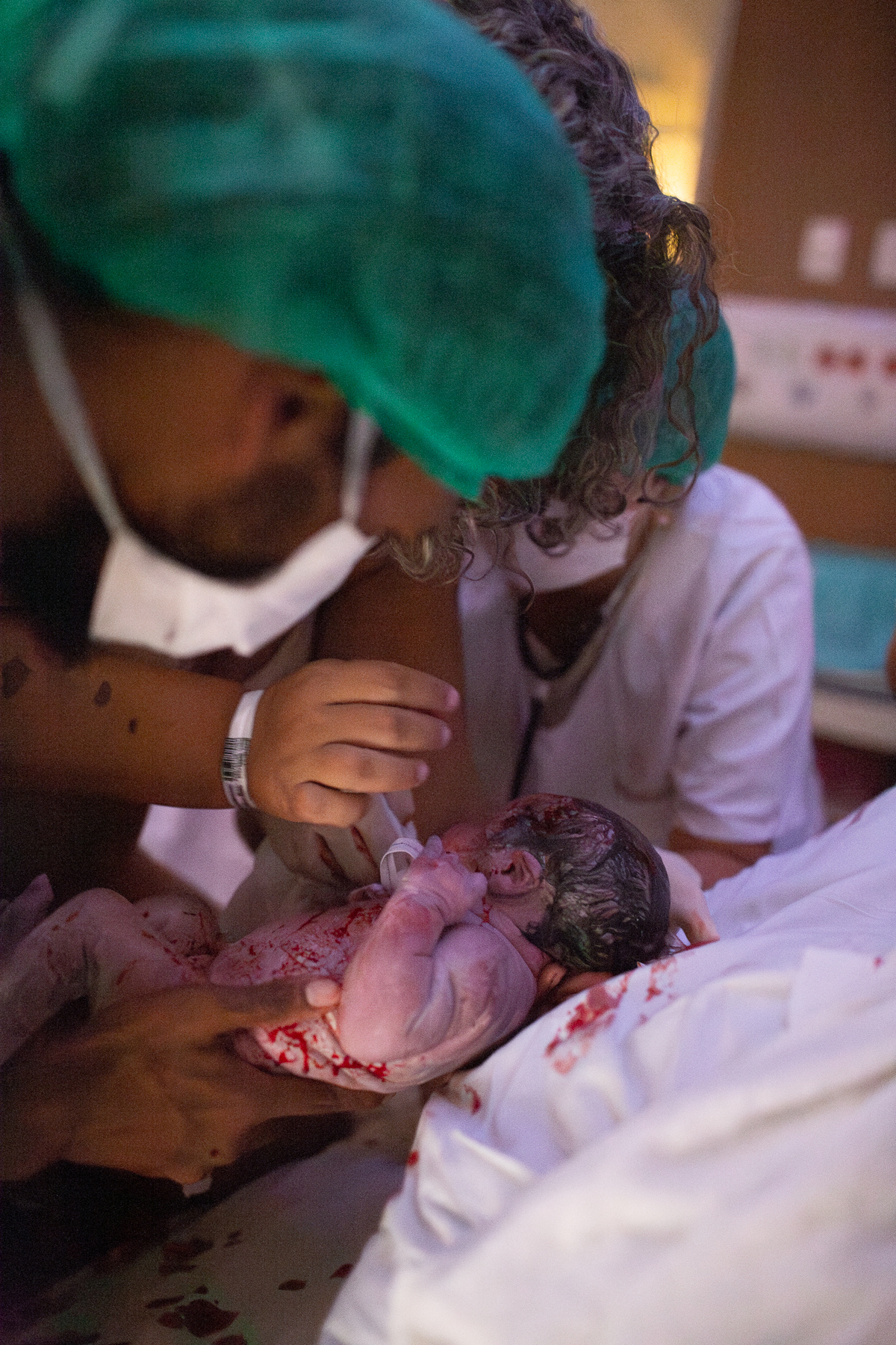 Sabíamos que seria rápido e intenso e assim foi. Correria pra chegar a tempo, ninguém brinca com gestante que pariu um filho anterior no susto numa sala qualquer de um hospital público porque não deu tempo de chegar na sala de parto. Mas tudo deu super certo e, mesmo não dando tempo de curtir a tão sonhada banheira, não faz mal, ela curtiu depois do parto. Com direito à Coca zero que pediu antes de parir e um pãozinho muxibento que, com a fome de recém parida, parecia manjar dos Deuses!