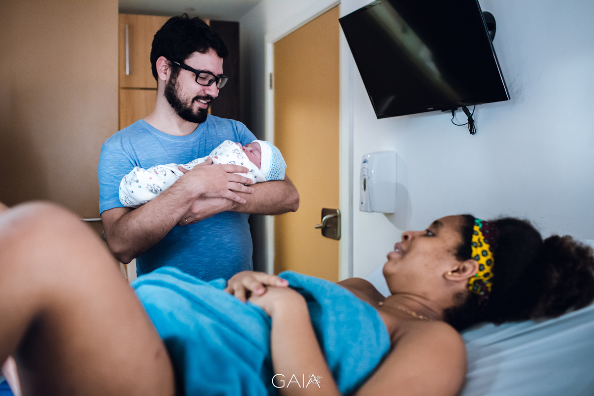 E esse time que esteve junto da Maria Carla na chegada do João foi assim. Dr. Phillipe Godefroy e Dra. Mariana Carvalho são uma dupla muito querida e especial e ofereceram uma assistência baseada em evidências aguardando o trabalho de parto começar espontaneamente mesmo depois de muitas horas de bolsa rota. Monitoramento seguro e muita, mas muita paciência. A doula Renata Guajará sempre me emociona com sua entrega e conexão. Entre técnicas para estimular que o trabalho de parto começasse, depois engrenasse, ela ainda achava espaço para muito carinho e olho no olho. O tempo todo conectada. E esse pai, gente? O momento da chegada do João foi muito lindo. Uma bolha de amor se formou entre o casal e eu tenho certeza de que o João vai levar isso em suas células para todo o sempre.