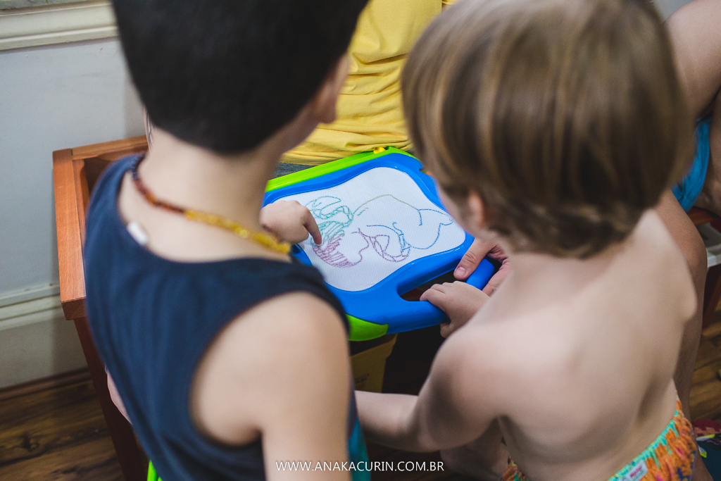A equipe do Coletivo de Parteiras já havia acompanhado os outros partos de Anne. Quando o expulsivo chegou, um tempinho depois de tudo começar, eu estava fotografando os meninos na sala, no andar debaixo e recebo uma mensagem: "Começou com puxos. Ela não faz barulhos. Não espere por eles. kkk". E assim, silenciosamente fomos nos reunindo para a chegada da Maya.