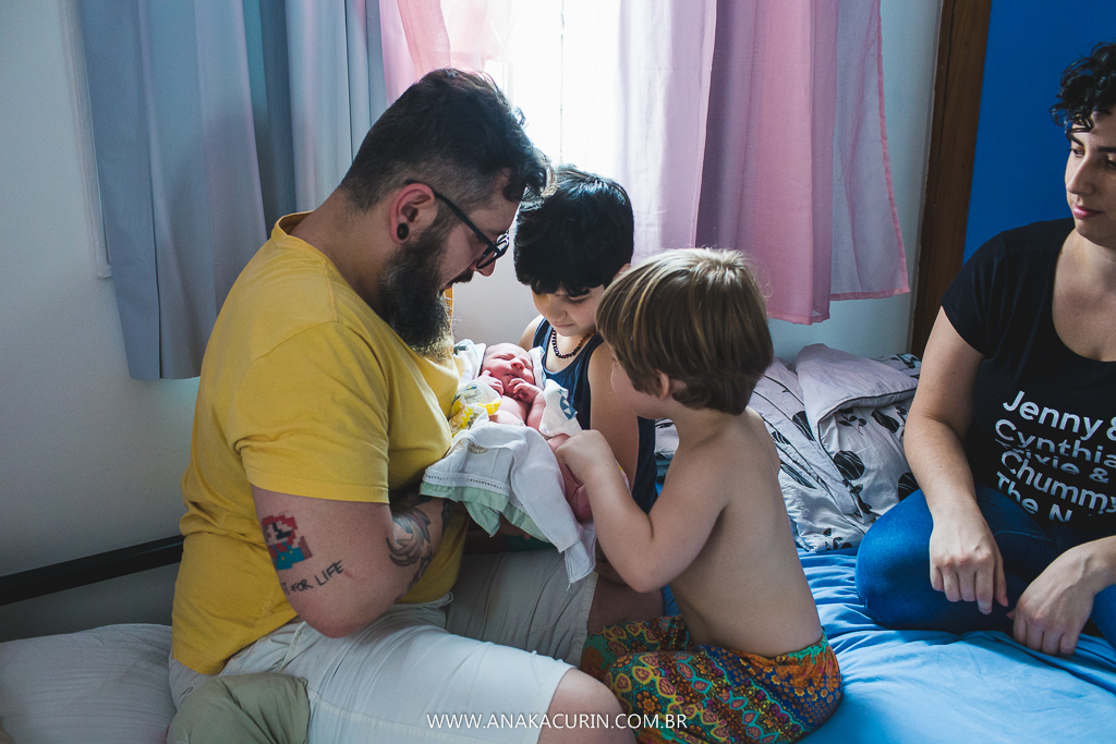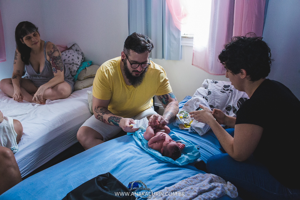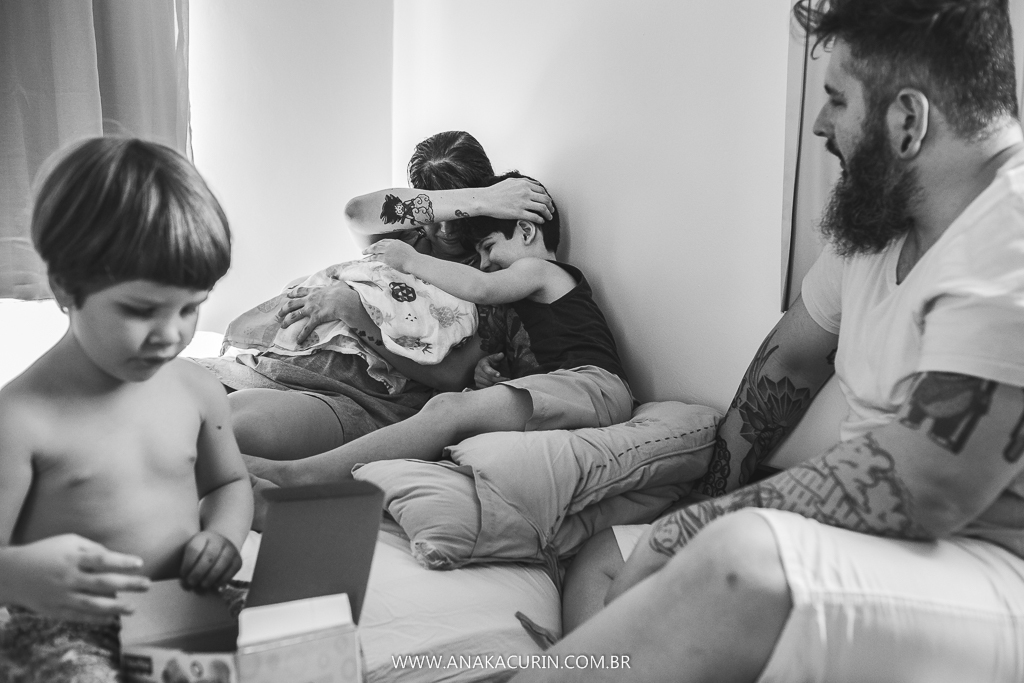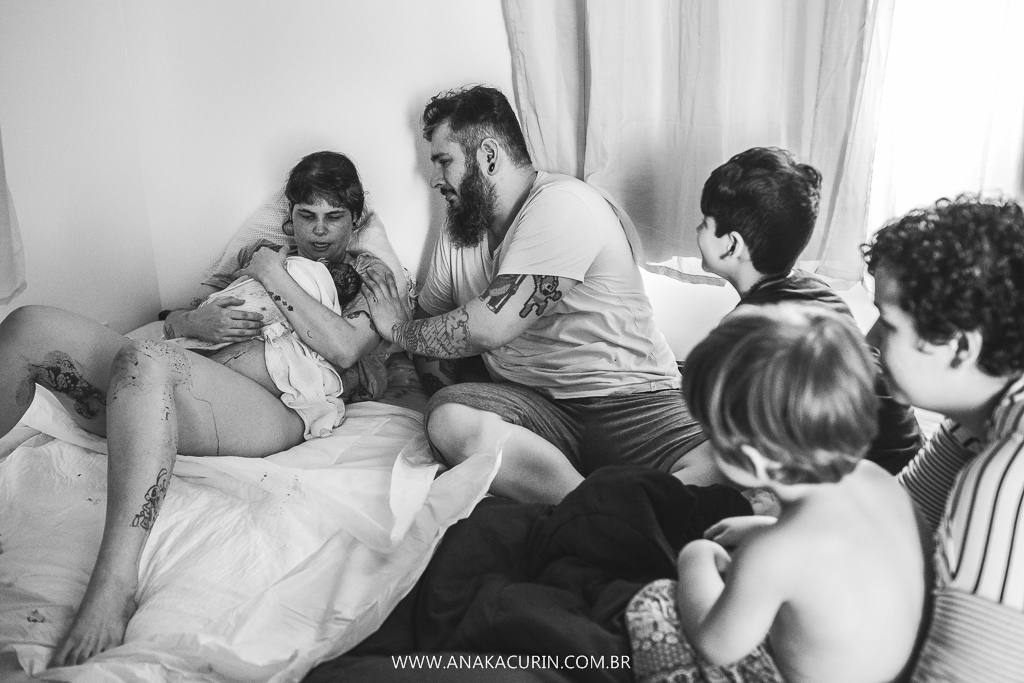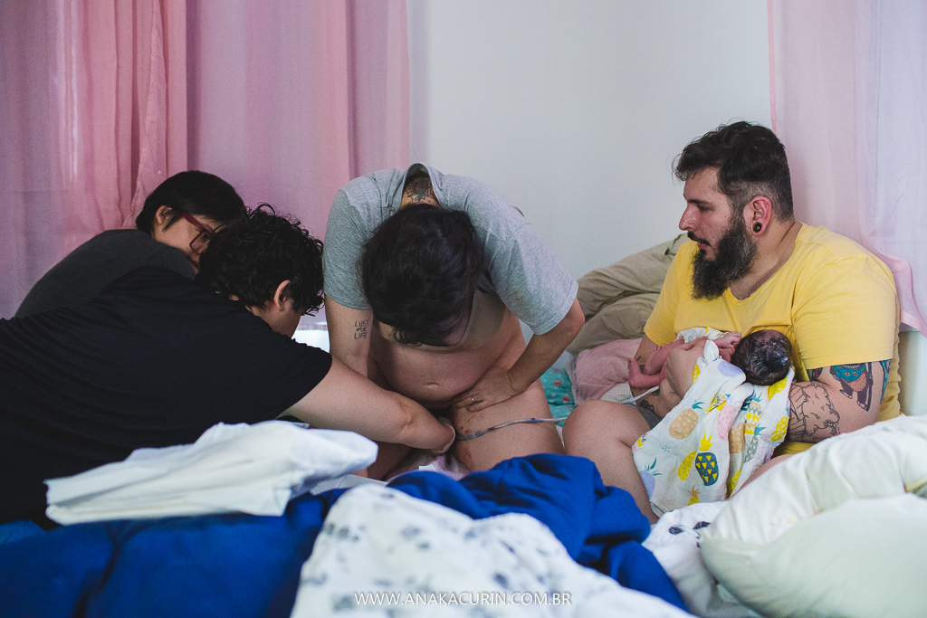 Eu os conheci quando eles ainda eram 3. Agora eles são 5. E a leveza é a mesma. A forma como eles conduzem sua mater/paternidade é inspiradora, eles inspiram calma, segurança, fé no amor que guia tudo que eles fazem. E o parto da Maya só consolidou tudo que sinto e penso sobre eles. Anne pariu em seu cantinho, apesar de ter piscina pronta e quente esperando, ela se sentiu segura ali, no seu ninho, junto de sua rede de apoio, dos seus amores, sua equipe atenta, silenciosa e paciente.