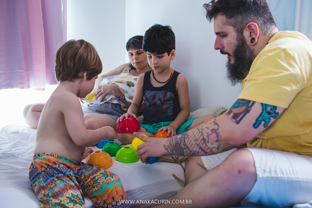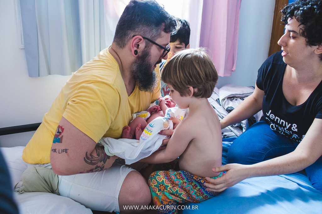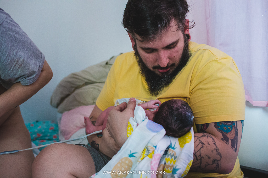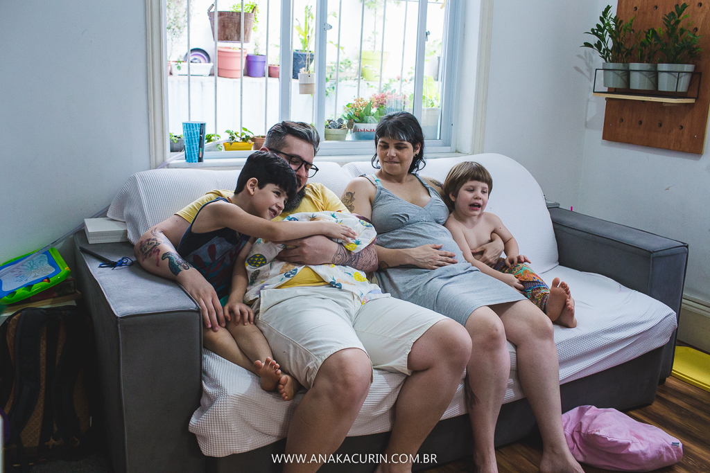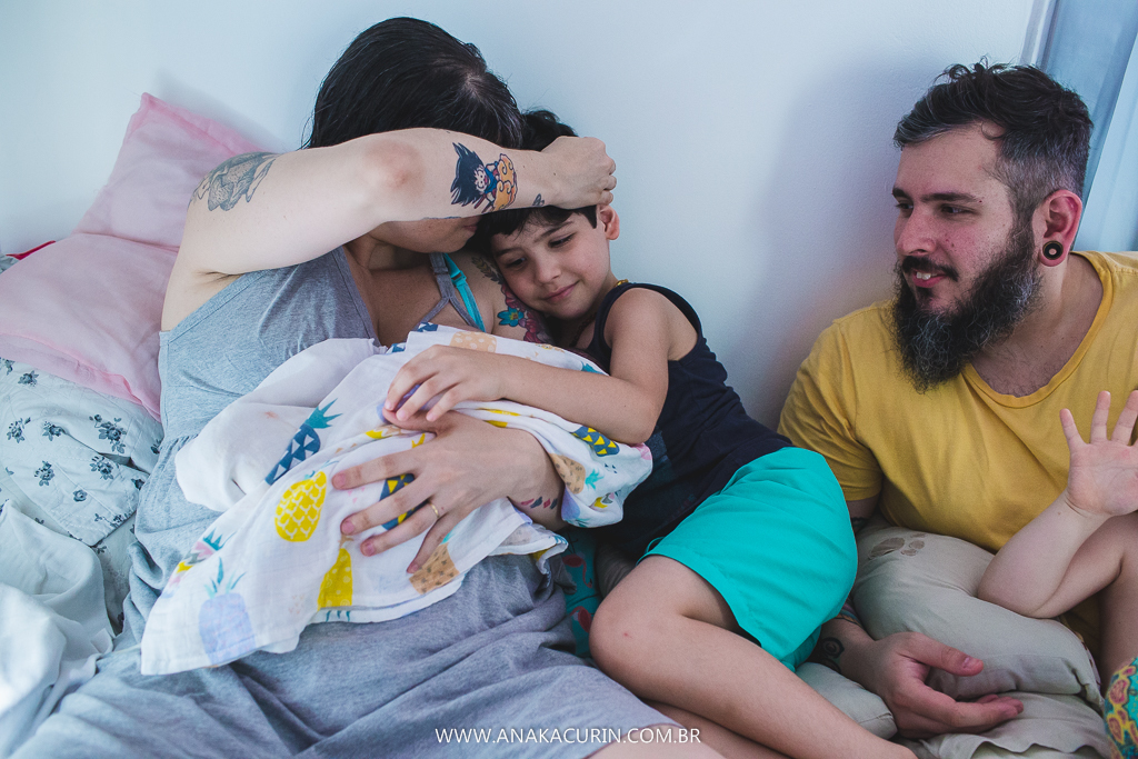 Eu os conheci quando eles ainda eram 3. Agora eles são 5. E a leveza é a mesma. A forma como eles conduzem sua mater/paternidade é inspiradora, eles inspiram calma, segurança, fé no amor que guia tudo que eles fazem. E o parto da Maya só consolidou tudo que sinto e penso sobre eles. Anne pariu em seu cantinho, apesar de ter piscina pronta e quente esperando, ela se sentiu segura ali, no seu ninho, junto de sua rede de apoio, dos seus amores, sua equipe atenta, silenciosa e paciente.